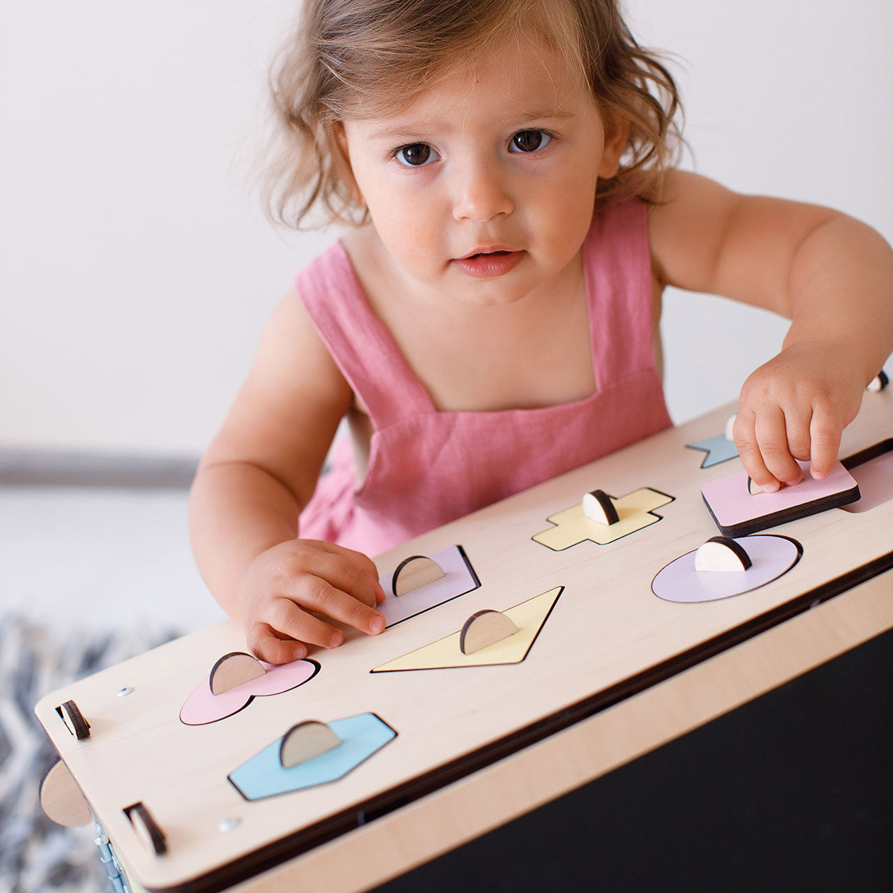 BusyBoard Playhouse Natura Pastel – Montessori wooden toy from 1 year
