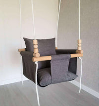 Babyschaukel aus Baumwolle – Dunkelgrau mit niedriger Rückenlehne