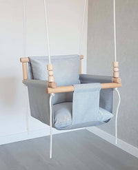 Babyschaukel aus wetterfestem Stoff – Hellgrau mit hoher Rückenlehne