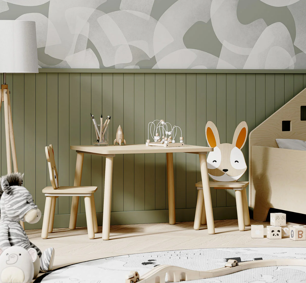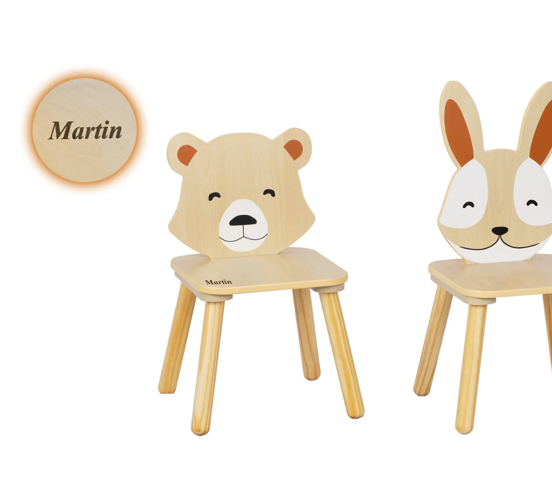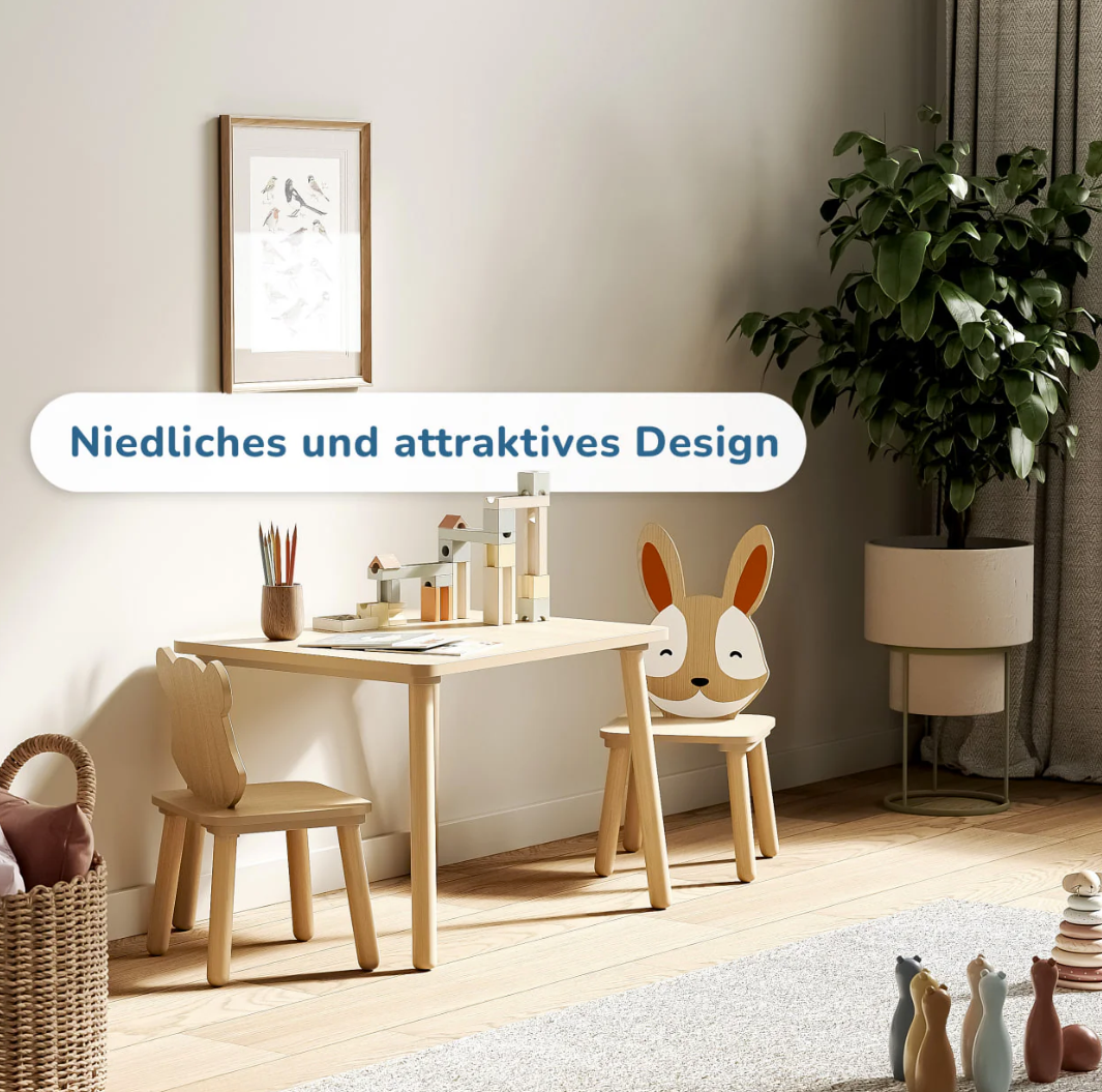 BusyKids Tisch & Stuhl Set aus Holz – mit Tierdesign