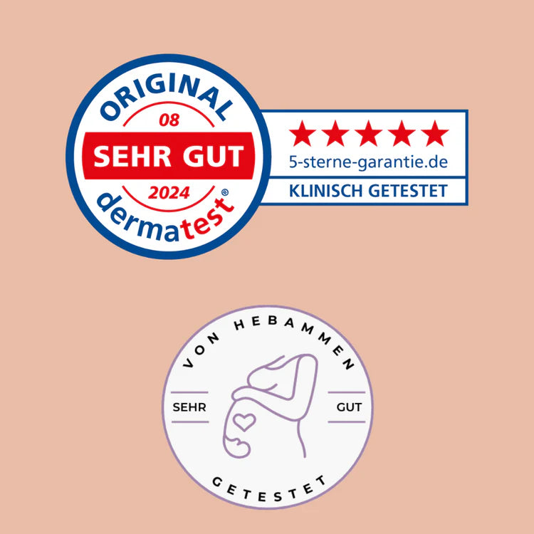 Die Rezeptur kommt ohne Parabene, Silikone, Duft- oder Farbstoffe aus. Dermatologisch getestet und mit „sehr gut“ bewertet – für eine besonders hautverträgliche Anwendung bei sensibler Babyhaut.