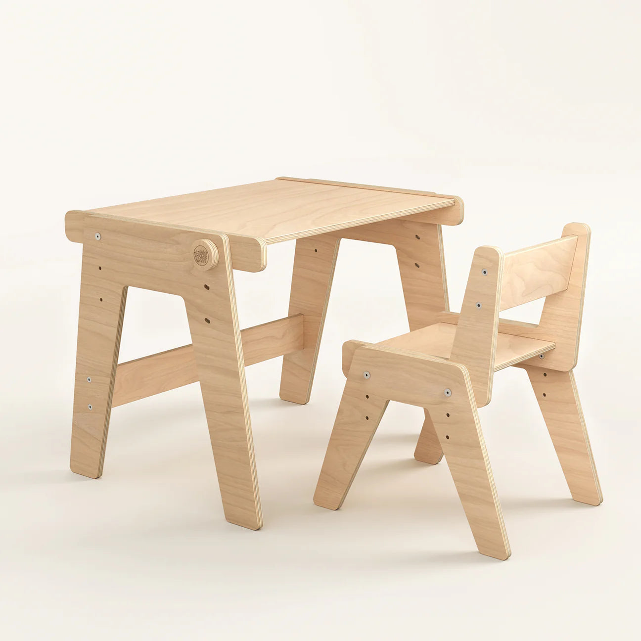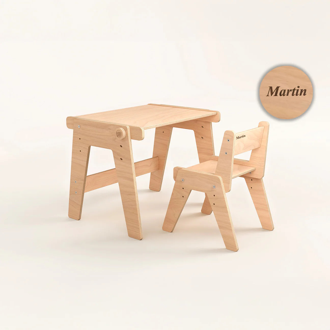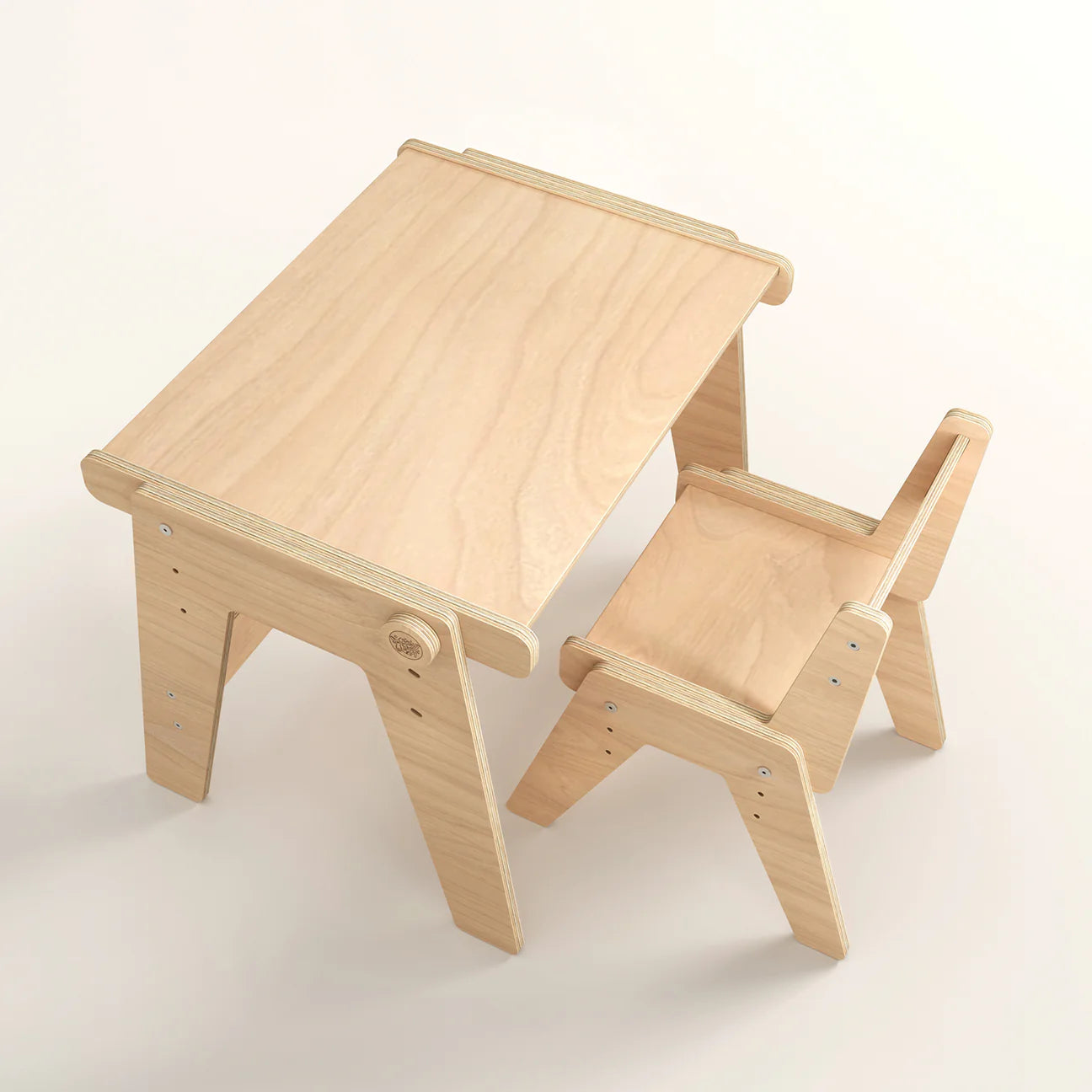 Montessori Tisch & Stuhl Set aus Holz – höhenverstellbar