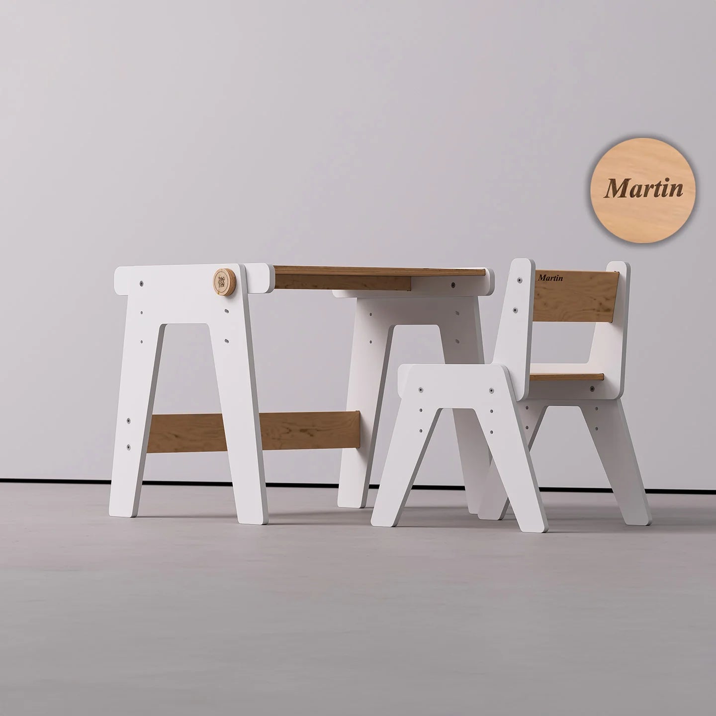 Montessori Tisch & Stuhl Set aus Holz – höhenverstellbar in Weiß