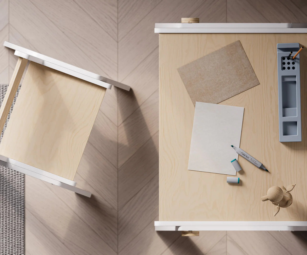 Die geneigte Tischplatte erleichtert das Schreiben, Malen und Lesen – ergonomisch, rückenschonend und angenehm für die Augen. Durch die höhenverstellbare Konstruktion bleibt das Set viele Jahre lang ein verlässlicher Begleiter.