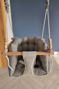 Premium Babyschaukel aus Leinen mit schwarzen Streifen